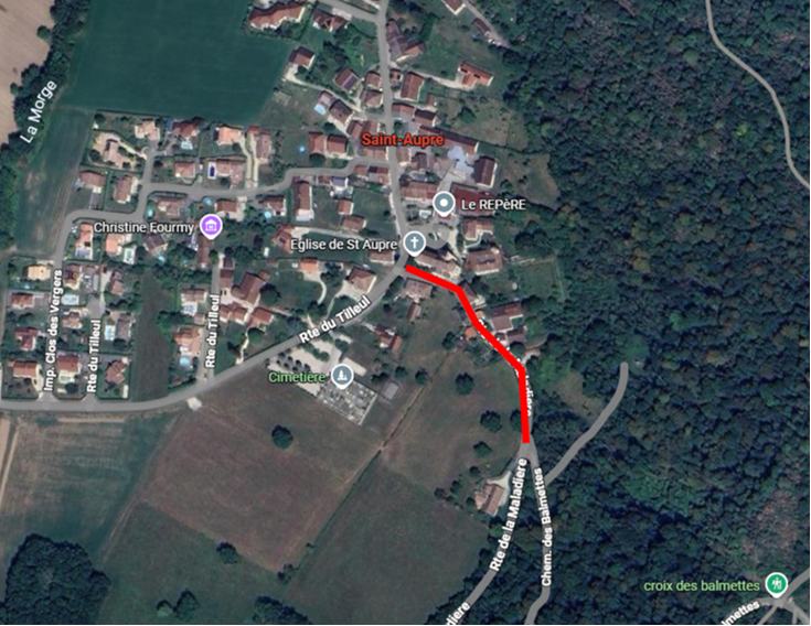 La prochaine phase commencera à partir du 08 décembre et concernera la Route de la Maladière (entre la Route du Tilleul et le Chemin des Balmettes) qui connecte St Etienne de Crossey (par la Route de l’ancienne poterie) à celle de St Aupre.